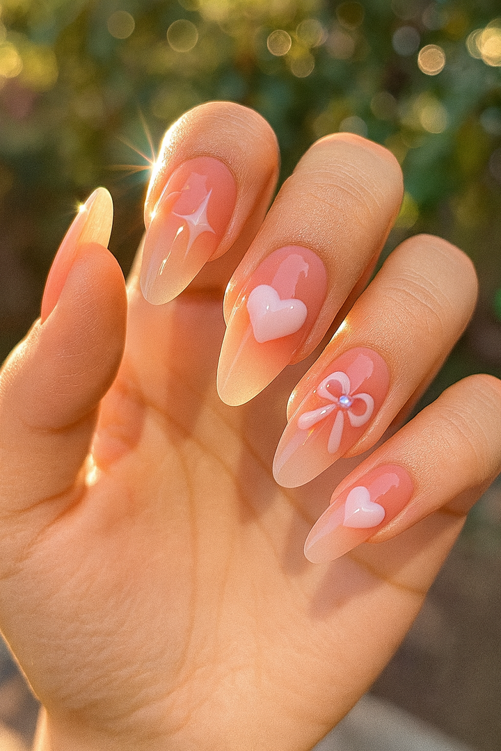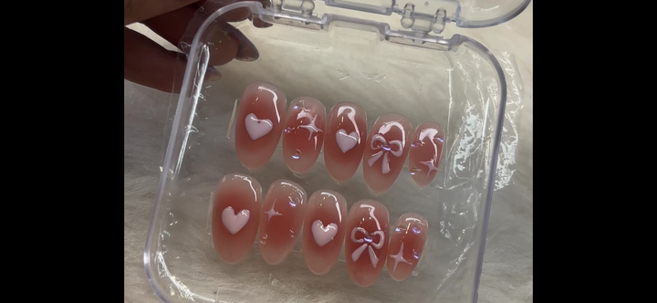 Pretty design full of nail art heart, bow and stars , best design for college and daily wear.